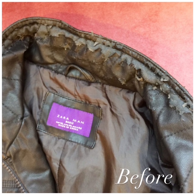 メンズブルゾンの襟の裏地付け替えオーダーです。