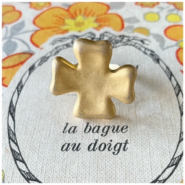 【Ring #7】ヴィンテージボタンリング 指輪 スカーフリング クロス 十字架 マットゴールド