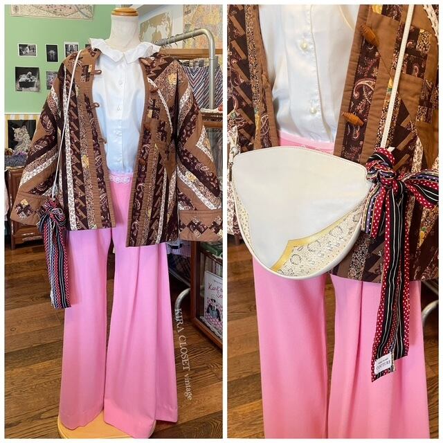 ヴィンテージ生地を使用しているアップサイクルアイテムです。一箇所糸引きがあります。写真10枚目をご確認ください。そのほか生地に多少の経年感を含むことがこざいます。コンディションについて気になる点がございましたら、ご購入前にお問合せください。