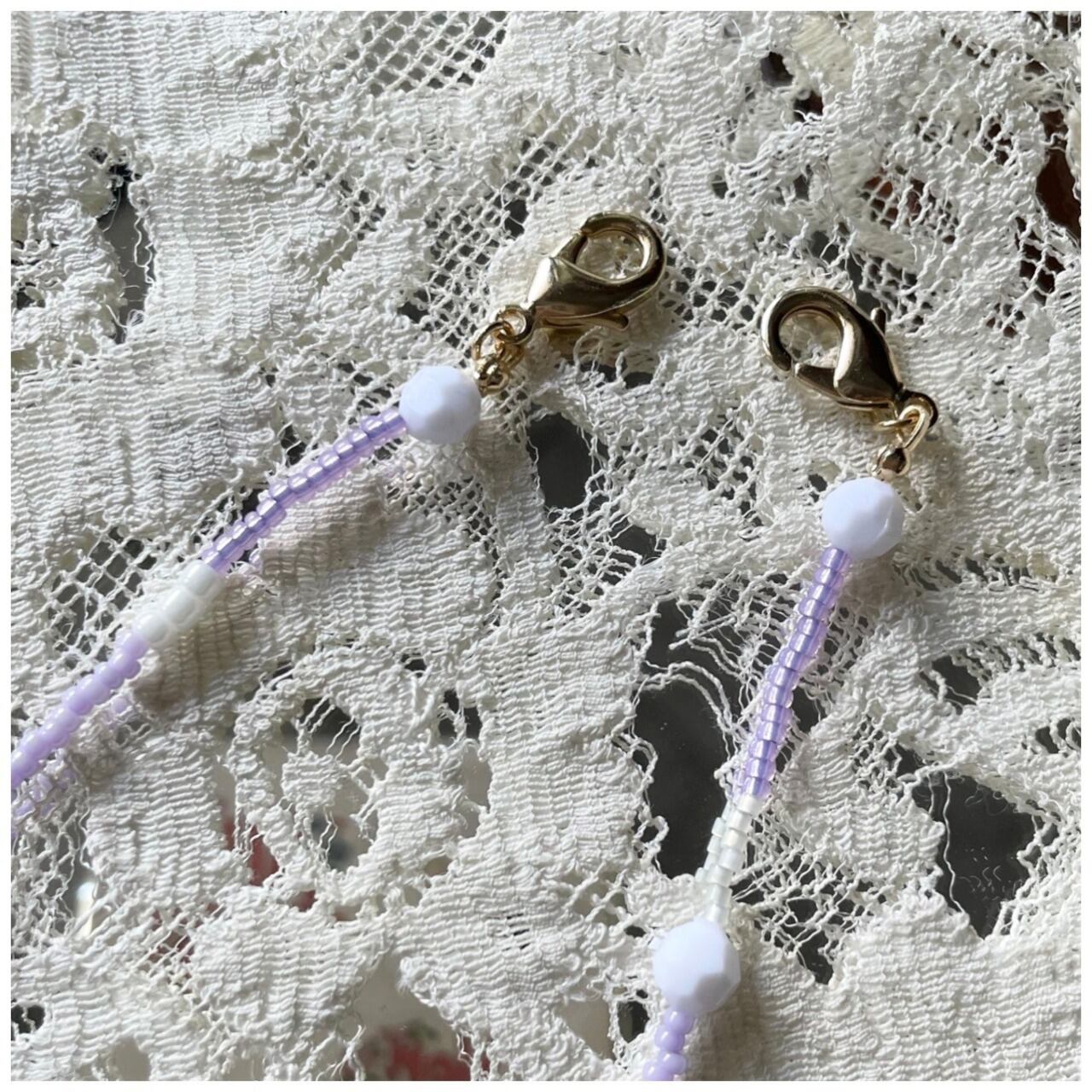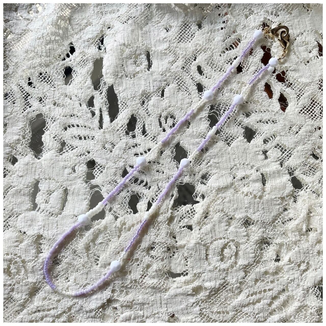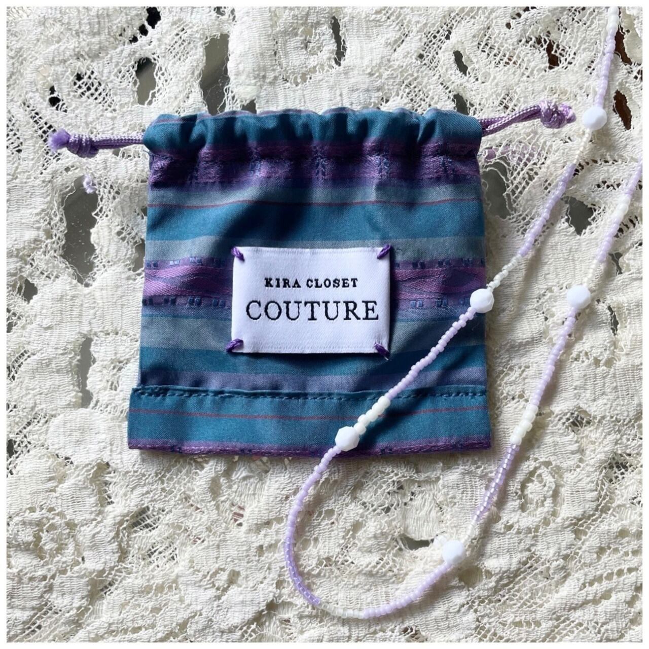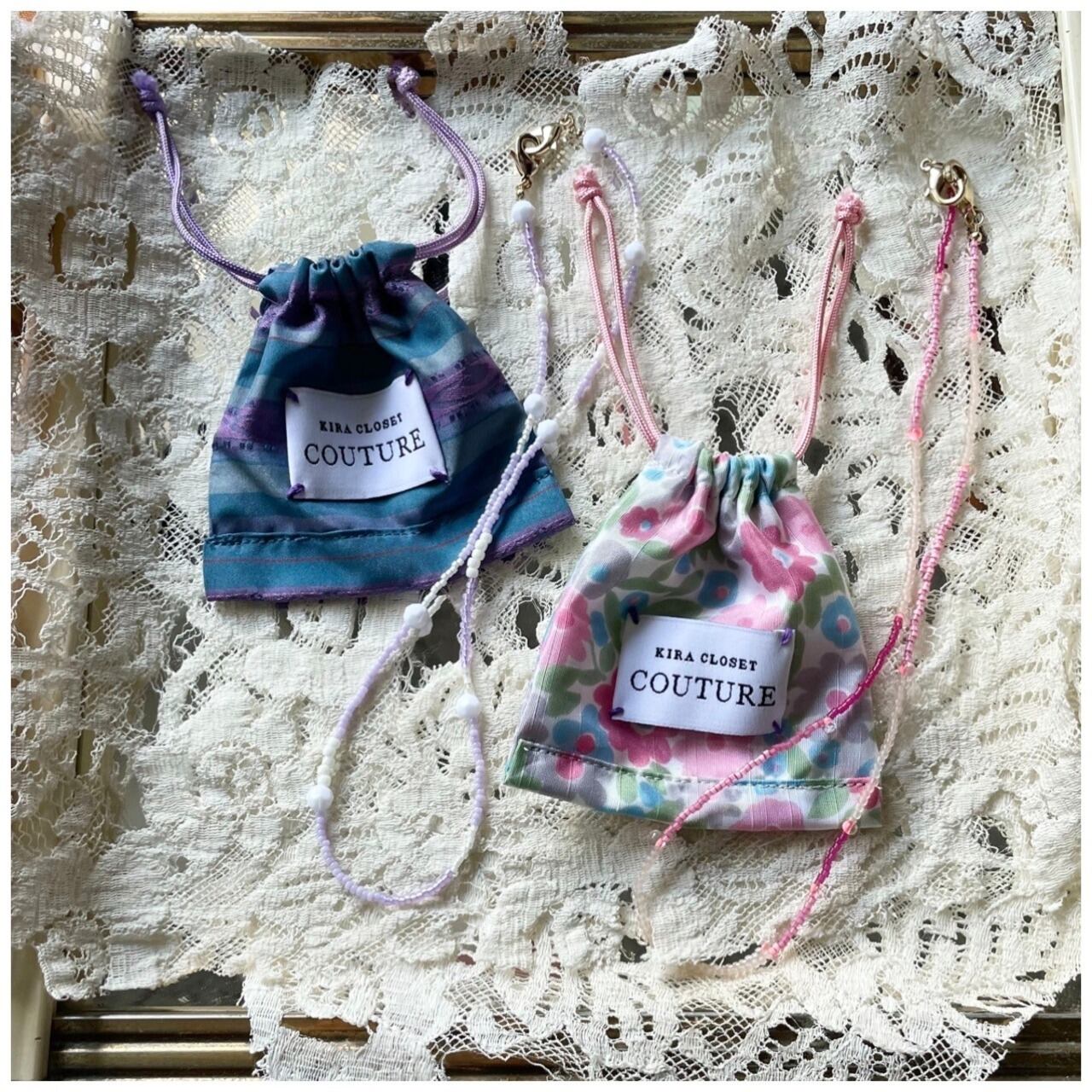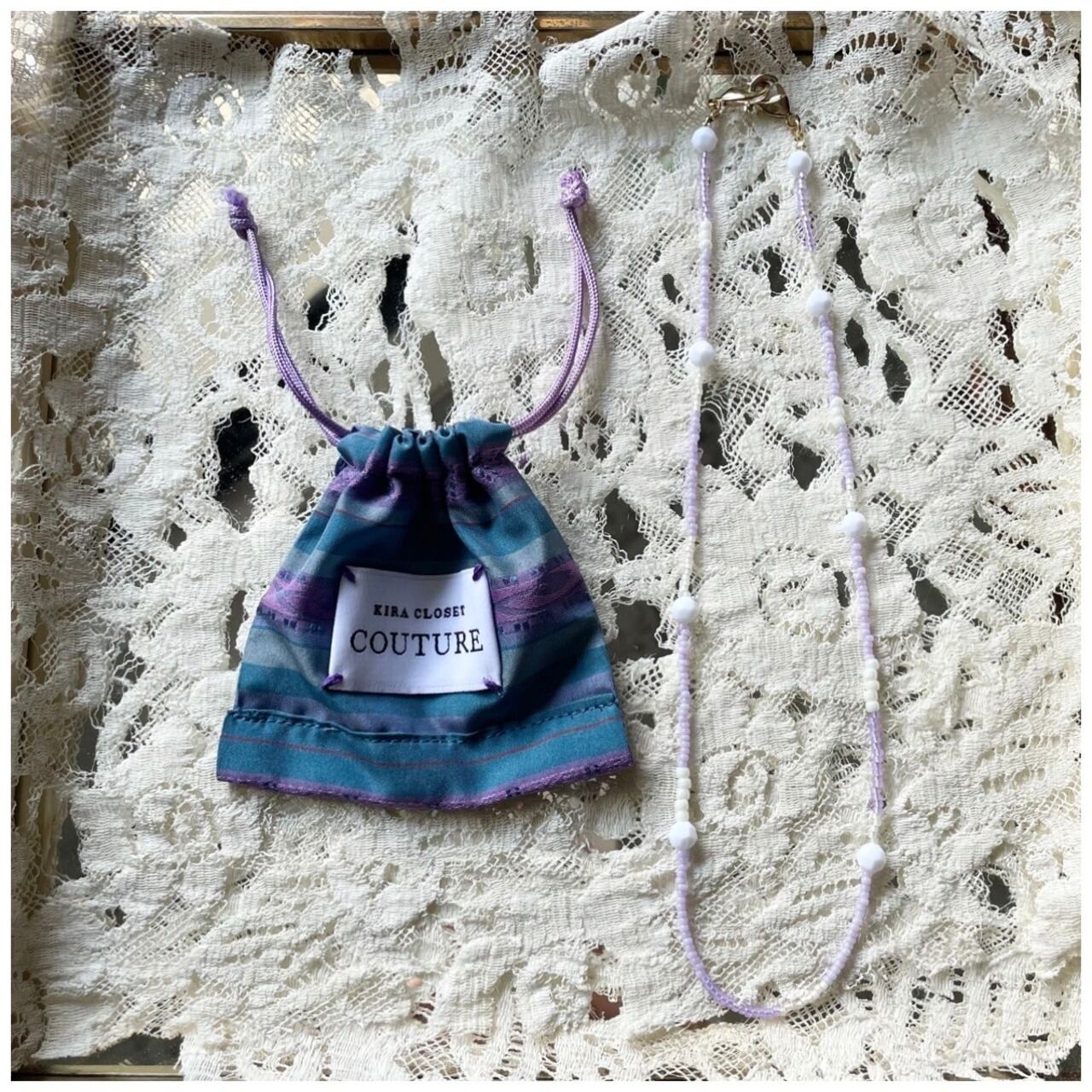 【Necklace #3】2wayネックレス ビーズネックレス ラベンダー ヴィンテージファブリック巾着