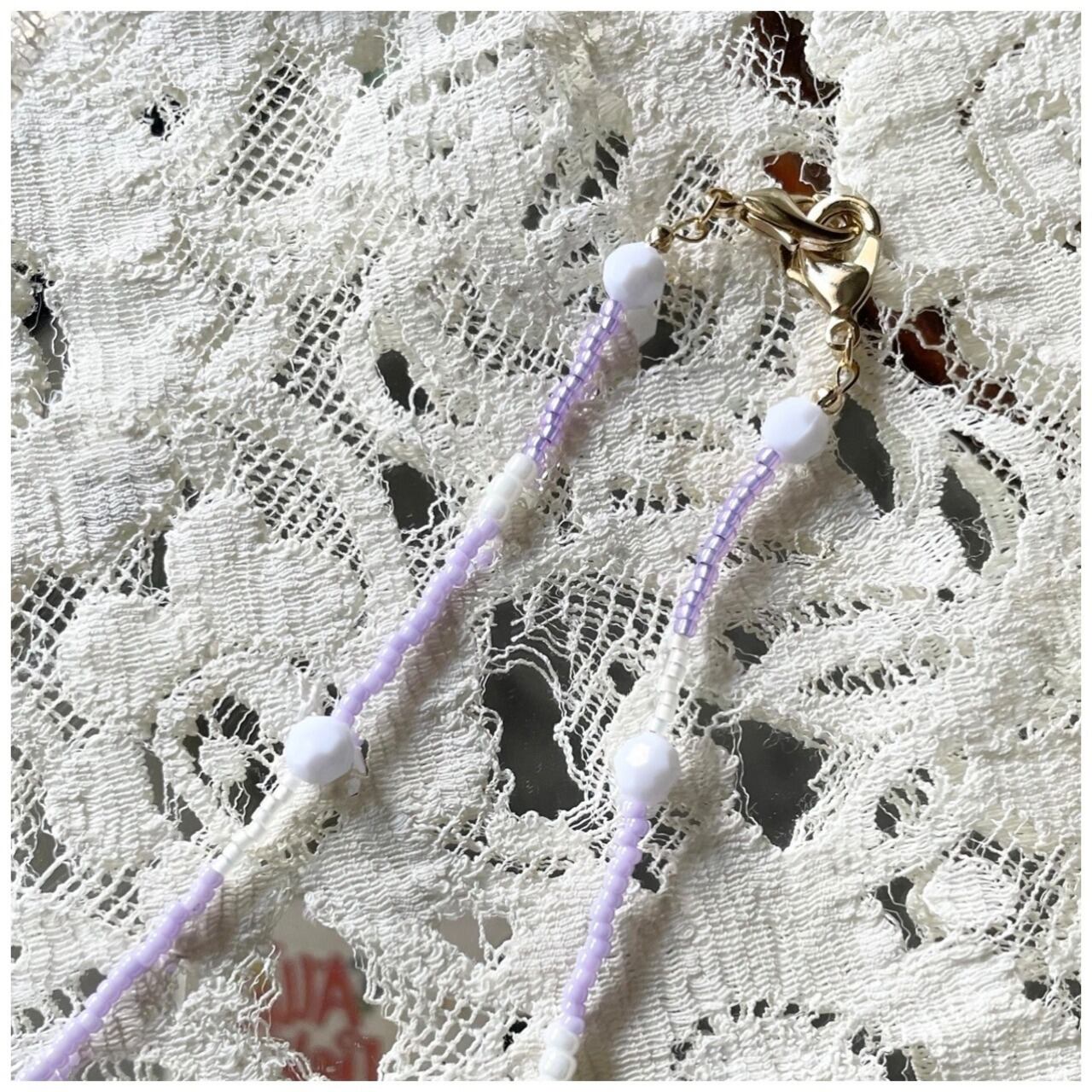 一部ヴィンテージビーズを使用していますキラクローゼットオリジナルのビーズネックレスです。軽いので気負わず着けれて、マスクストラップとしても使える2way仕様。また、留め具が大きいので装着しやすいのも嬉しいポイント◎フレンチヴィンテージファブリックで作った巾着とのセットです。