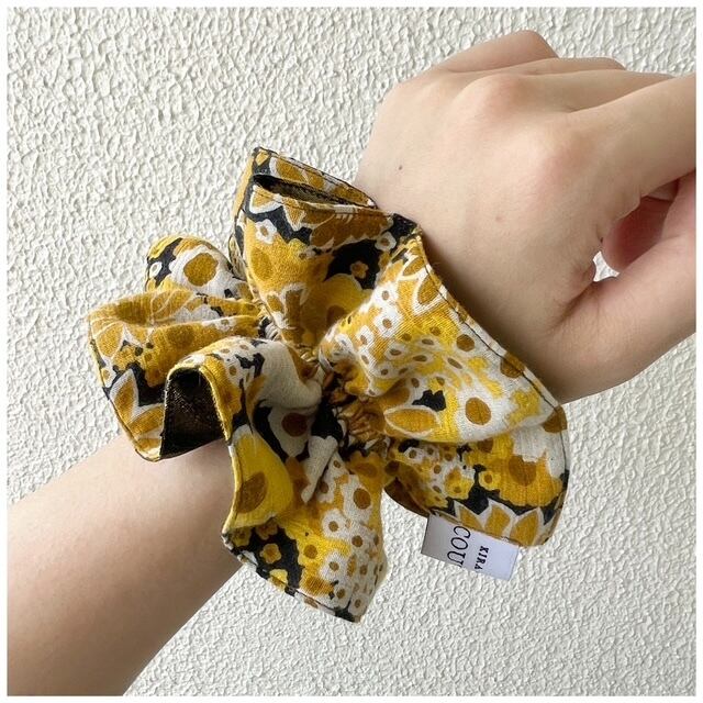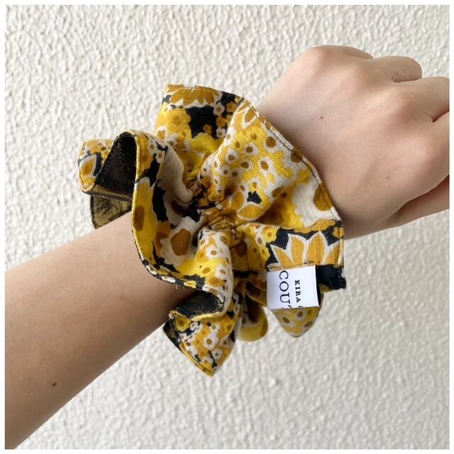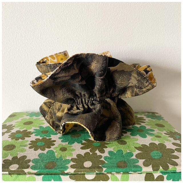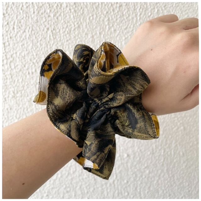キラクローゼットオリジナルのヴィンテージファブリックシュシュ。フレンチヴィンテージファブリックを贅沢に使用しましたハンドメイドの1点ものです。手首に着けると着けカフスみたいになる程よいボリューム感がグッド。異なった印象を楽しめるリバーシブルのカラーコントラストもこだわりポイントです♡