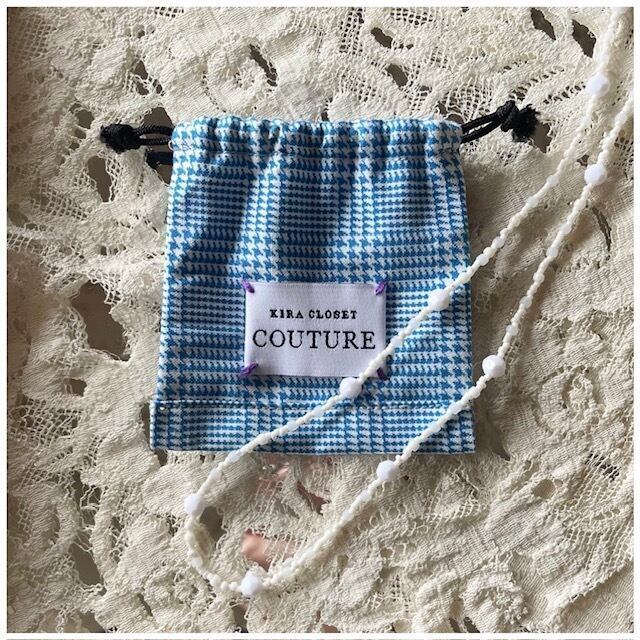 一部ヴィンテージビーズを使用していますキラクローゼットオリジナルのビーズネックレスです。軽いので気負わず着けれて、マスクストラップとしても使える2way仕様。また、留め具が大きいので装着しやすいのも嬉しいポイント◎フレンチヴィンテージファブリックで作った巾着とのセットです。